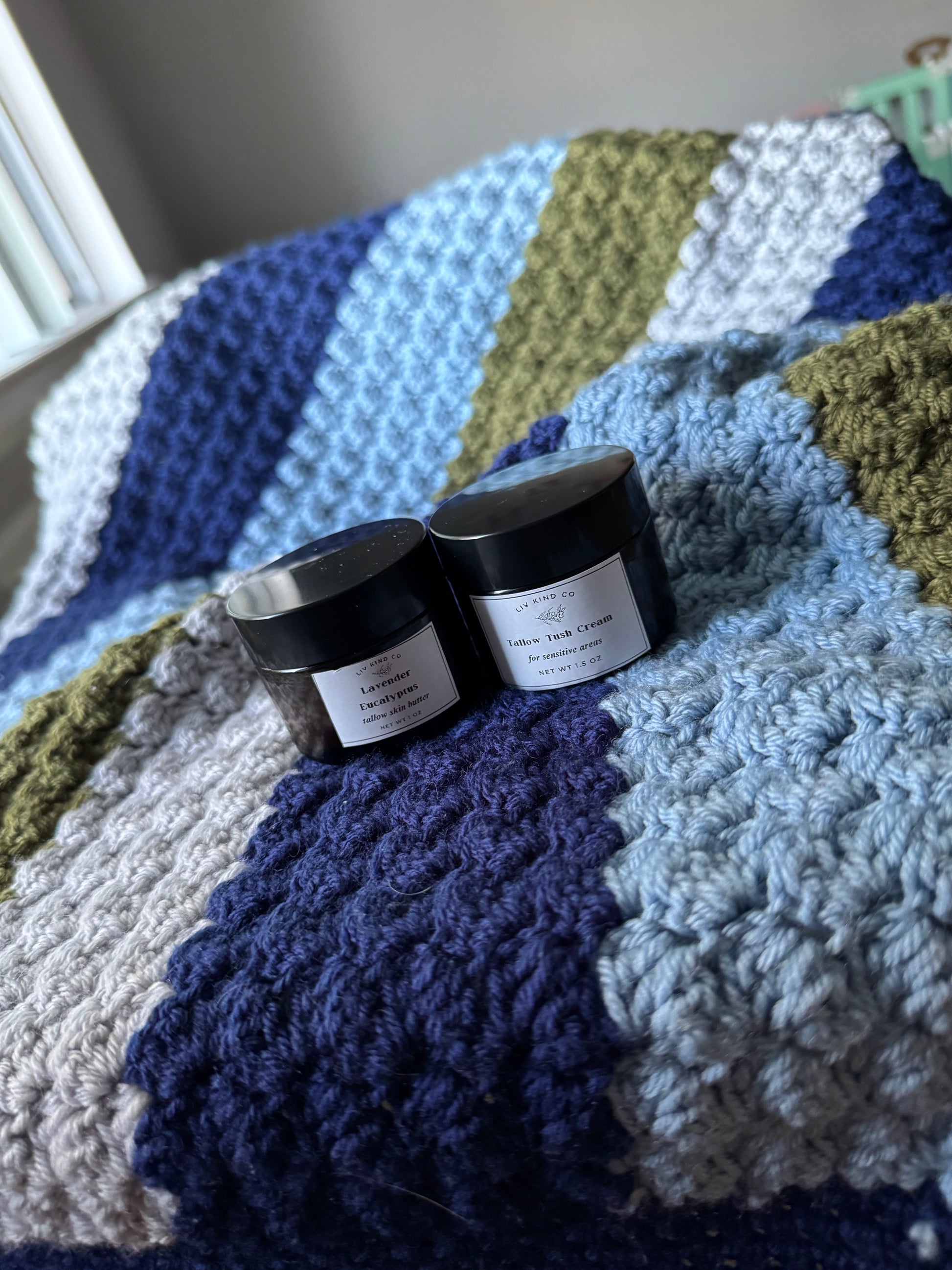Nurture both mama and baby with this thoughtful trio. The Mommy & Me Bundle includes our rich skin butter mini, a soothing diaper cream, and a gentle tallow soap. Each product is made with clean, time-honored ingredients that care for delicate skin—whether it’s calming a little one’s irritation or giving mom a moment of nourishing self-care. A sweet everyday essential, perfect for new mothers or baby shower gifting.